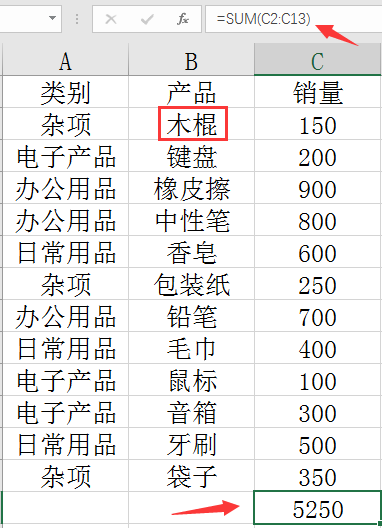 大家请看范例图片,我们计算单品销量占比,不会函数的小伙伴先来个自动求和。