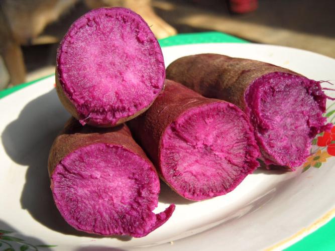 在选购紫薯时,一定要买那种山地里面种植出来的。毕竟这个地区种植的紫薯生长的周期比较长,质感比较好。另外在挑选紫薯时,也需要看一下紫薯皮的颜色。如果说紫薯皮的颜色偏紫黑色,吃起来的味道是特别香甜的。