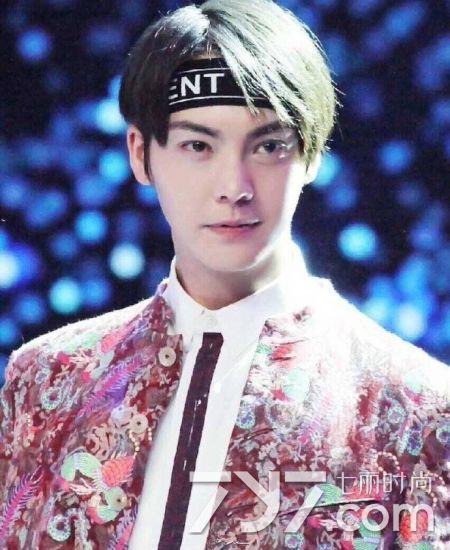 陈伟霆二八分发型是最常见的一款造型,直顺的短发看起来还柔美的,加上运动发带搭配,真的帅呆。