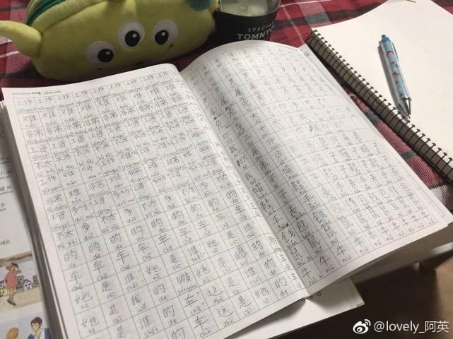 近日,她又晒出了自己的练字本,秀自己练习的汉子,据悉这样练字的日子已经持续快一个月了。