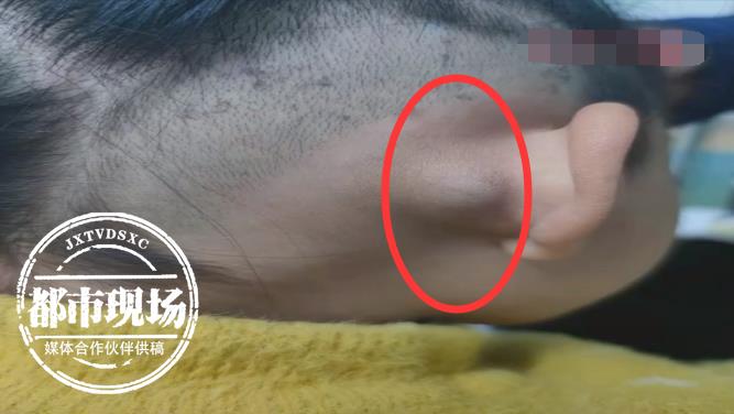 家长告诉记者,孩子当时被打气筒甩到耳朵之后,并没有明显异常,直到近期发现孩子耳后的包块一直没有消除,还越来越大,这才引起警惕。