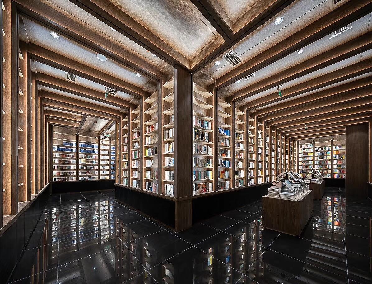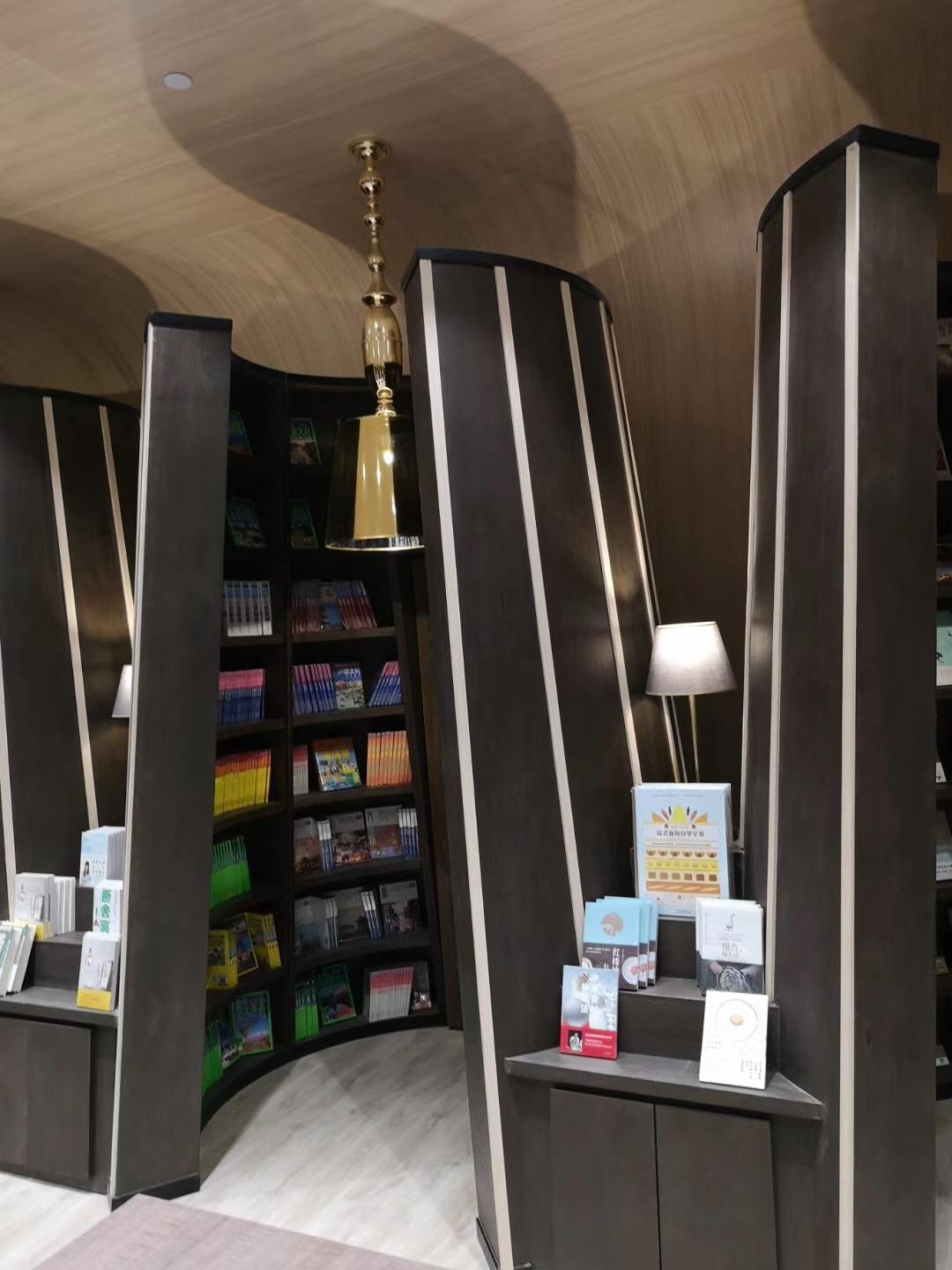 2025年刚刚揭开崭新篇章,钟书阁的版图便延伸到了山城重庆。诗意与人间的相逢,古老与现代的碰撞,在钟书阁重庆店的空间内碰撞出人间最绚烂的烟火。而“光”也成为了重庆店内最显著的视觉元素。沿着扶梯缓缓登上3楼,首先映入眼帘是最具代表性的文字幕墙,璀璨的灯光透过落地玻璃倾斜而出,让读者如流萤扑火般循光而来。大厅的主色调是沉稳厚重的深棕色,为了降低色彩所带来的沉重感,设计师在空间内设置了错落的“灯罩书架”。温暖的灯光投射而出,读者置身于灯罩之内,便仿佛身处于明亮温暖的私属书房之内。卸下了一身疲惫,享受一个人的阅读时刻,这种温暖便仿佛黑暗长巷里的一盏微灯,映射来路,指引前方。