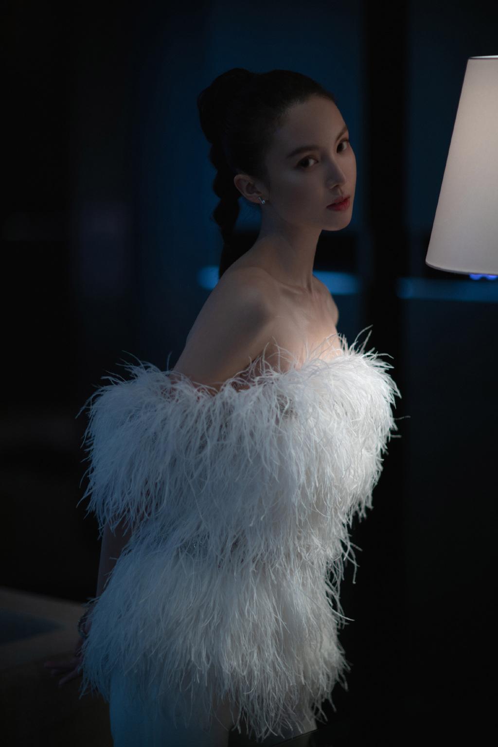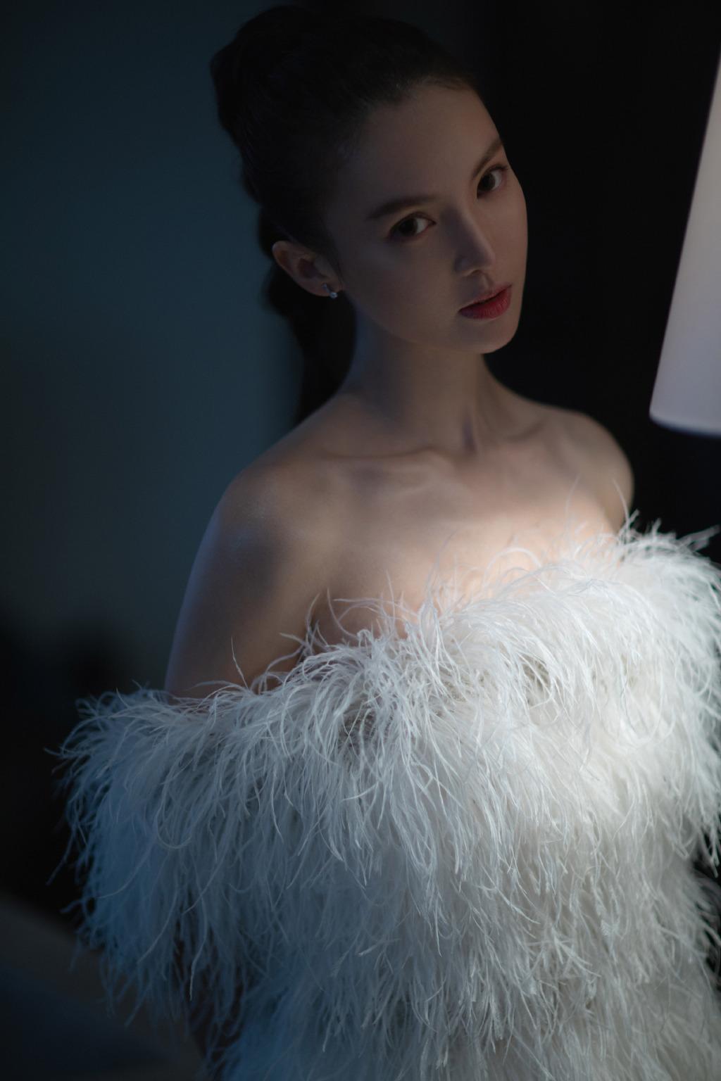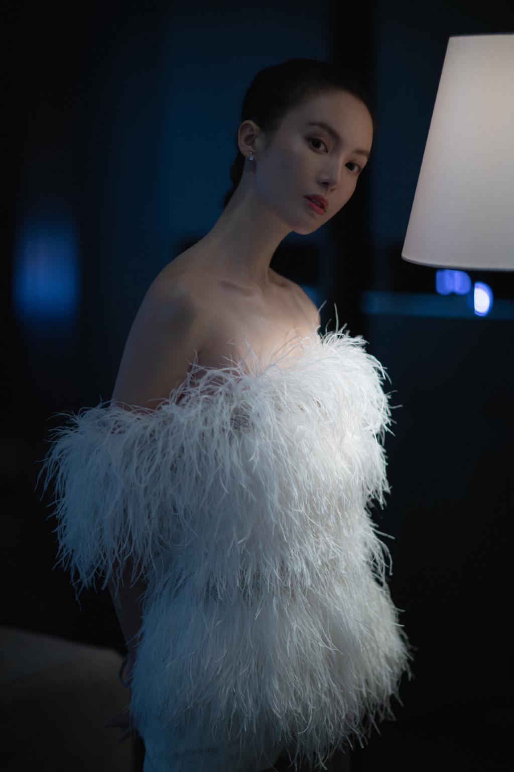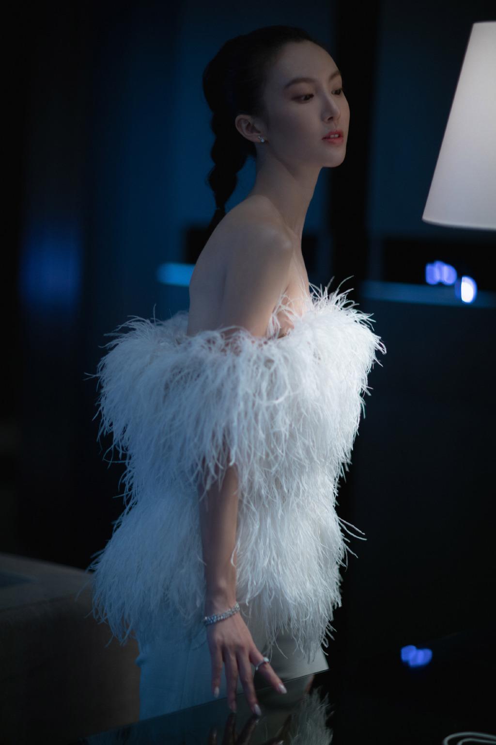 《秦时明月》中饰演虞姬,今出席活动,一袭白色羽毛装美成小仙女