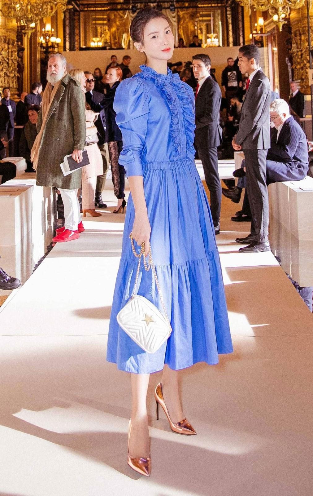 这张照片中金晨穿了一袭蓝色的连衣裙,感觉腰部以下全是腿,这曼妙大长腿实在是太吸睛了,让人百看不厌,脚上的金色高跟鞋更是显得气场十足。