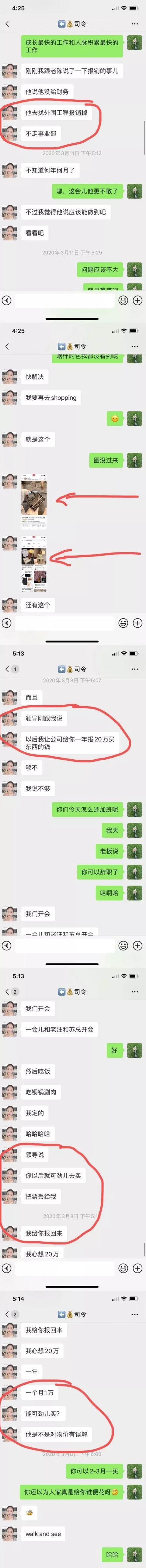 最后的聊天记录很劲爆,就是关于张雨婷出轨对象,也就是绿地高层领导陈军挪用公款的细节,起初也只是挪用一些小钱,买个几万的包包,之后可就收不住了,二十万的一次性报销,简直不能再潇洒。