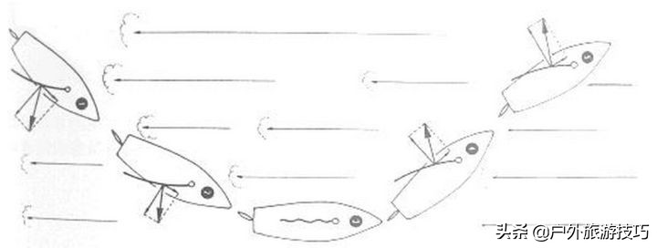 于是,按照以上方法,下图表示帆船只要适当地驶帆及操舵,就可以采用之字路线逆风航行!