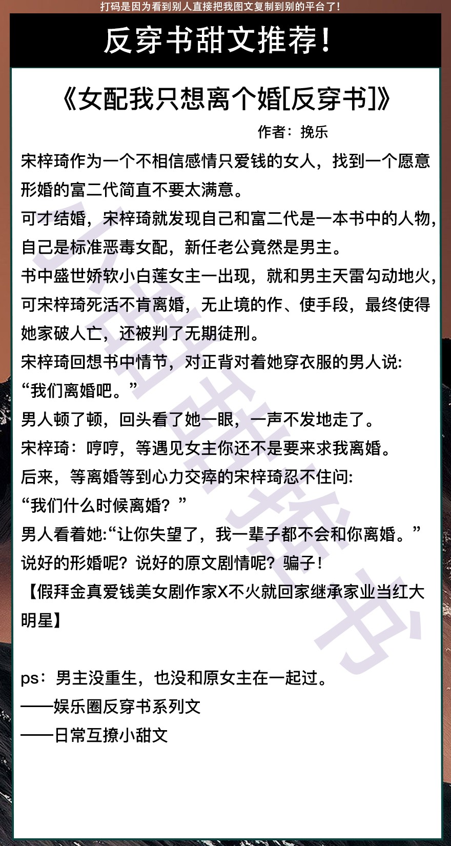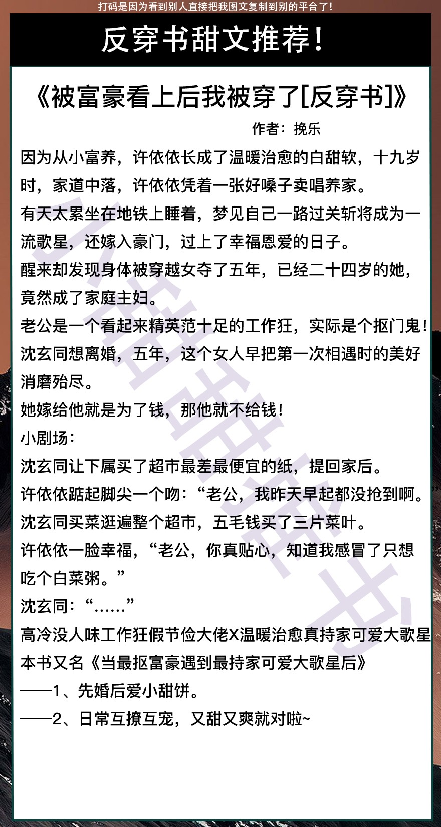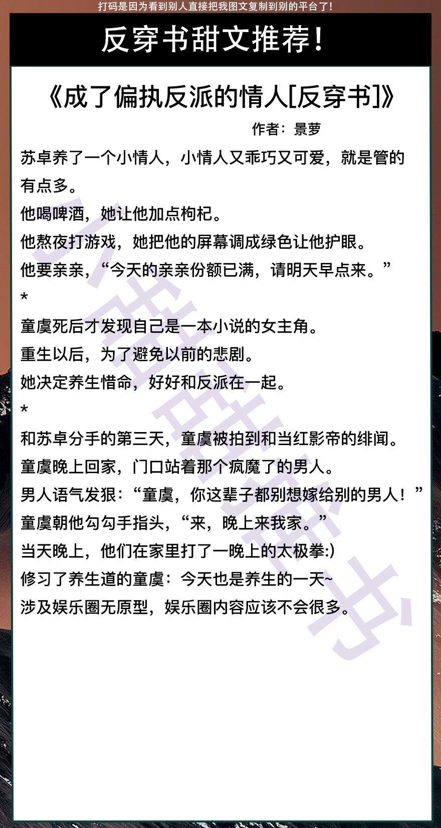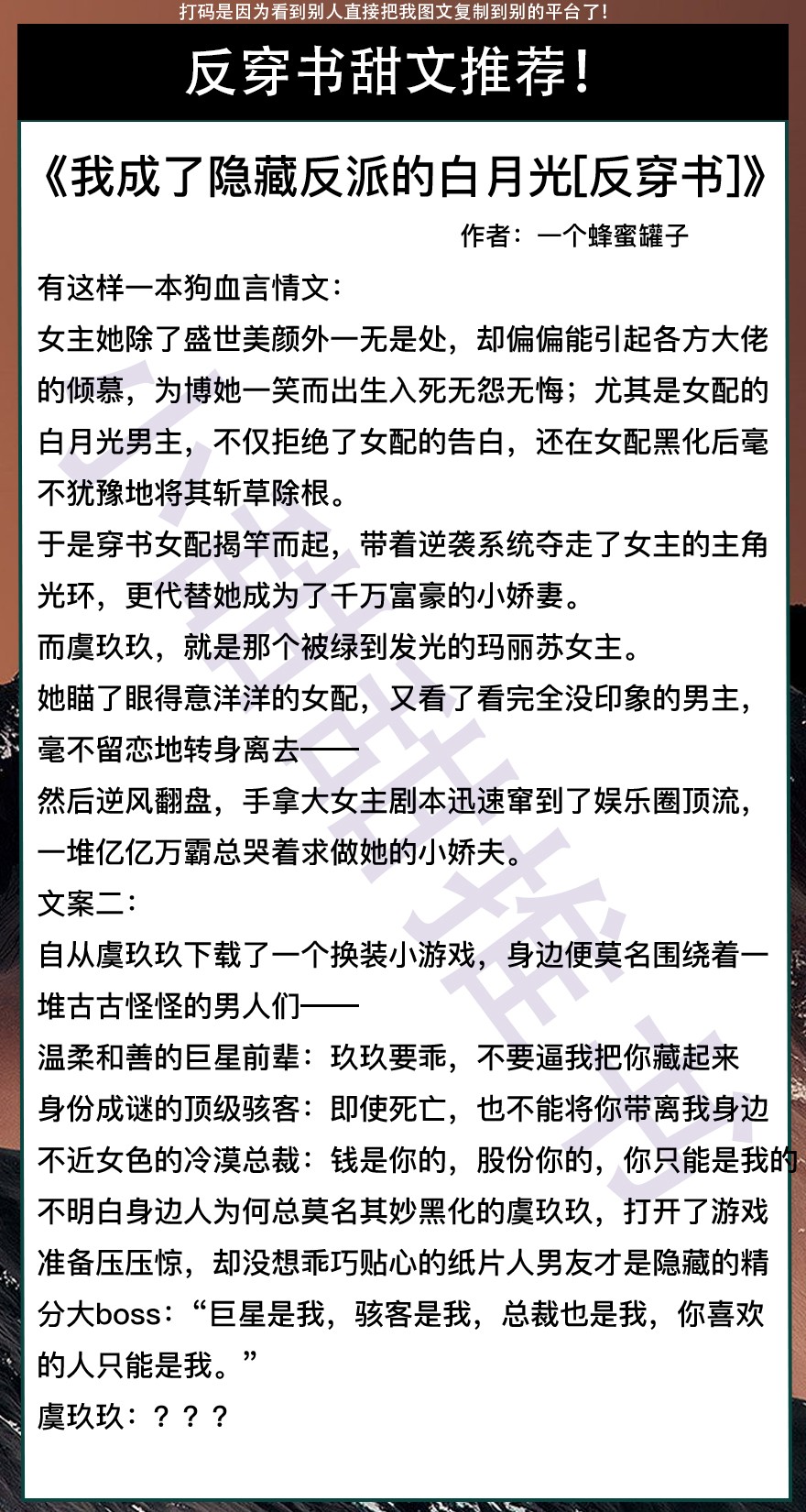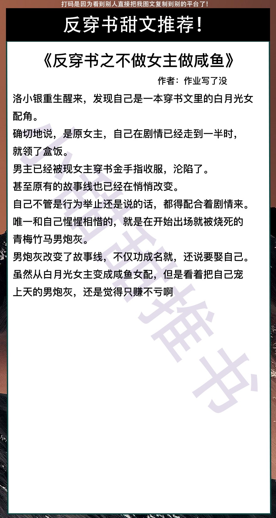 以上是本期推荐!关注我每天有不同的精彩小说推送哦!另:图片背景素材来源于网络,侵删致歉!