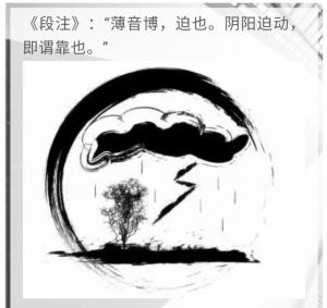 《说文》:“雷,阴阳薄动雷雨,生物者也。从雨,畾(léi)声象回转形。鲁回切(léi)。”
