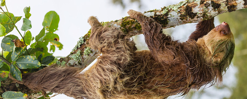 树懒是哺乳纲披毛目下树懒亚目动物的通称,是哺乳动物。它的外形有点像猴子,动作缓慢,常用爪倒挂在树枝上几个小时都不移动,所以叫树懒。树懒是身上长着藻类、地衣等植物的野生动物,它虽然有脚但是却不能用来走路,身体前行依靠的是前肢拖动。嗅觉比较灵敏,但视觉和听觉很不发达,是夜行性动物,主要吃树叶、果实,主要在南美洲分布。