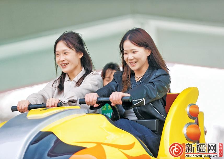 在水上乐园欢乐世界,游客在体验亲子过山车。(全媒体记者迪丽娜尔·加力肯摄)