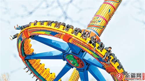 在水上乐园欢乐世界,游客在体验极限大摆锤。(全媒体记者迪丽娜尔·加力肯摄)