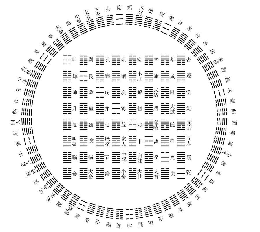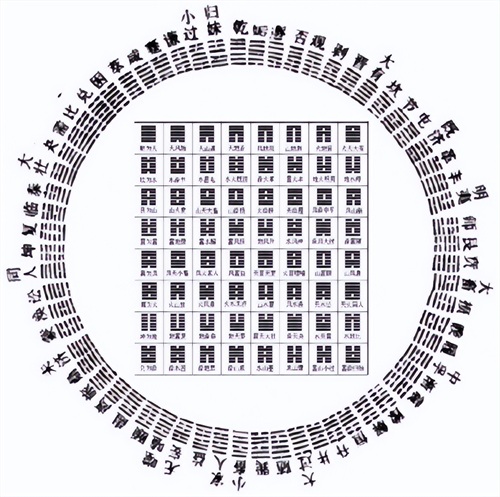 先天八卦有方圆图,叫伏羲六十四卦图,简称方圆图或先天图。