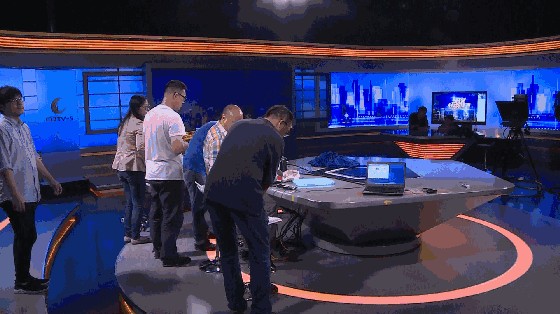 随着两块65寸触摸屏,两块大屏区的投入使用,灯光总量增加近一倍,演播室的取景范围也将达到270度。实现了全媒体生产运行与电视新闻制作传播的深度融合。