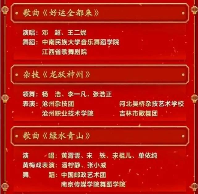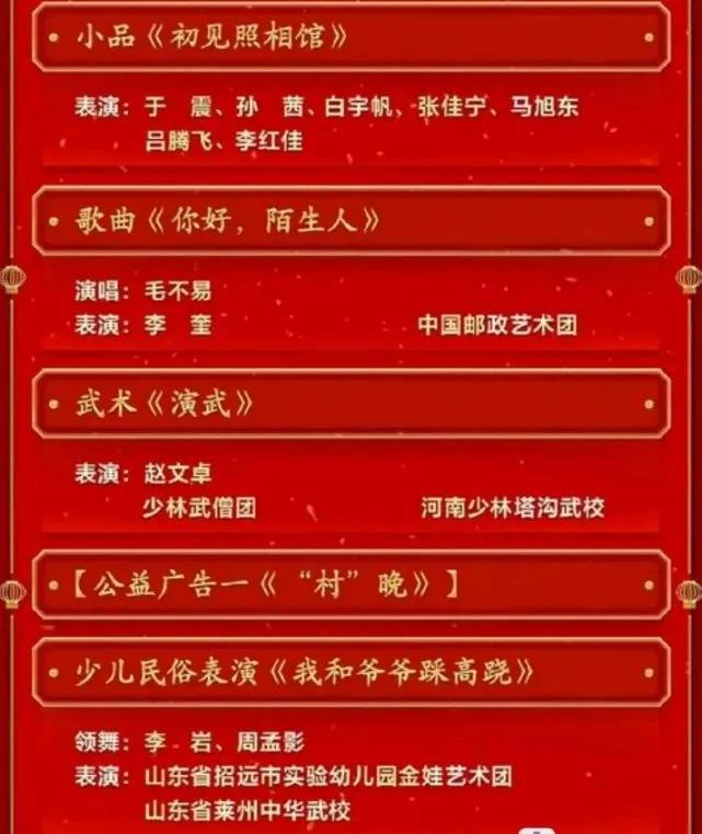 整个节目单看下来,内容还是挺丰富的。就是感觉语言类节目有点少,老一代的小品演员已经全部退出历史舞台。对于这个节目单,你有什么想说的吗?你最期待的是哪个节目?