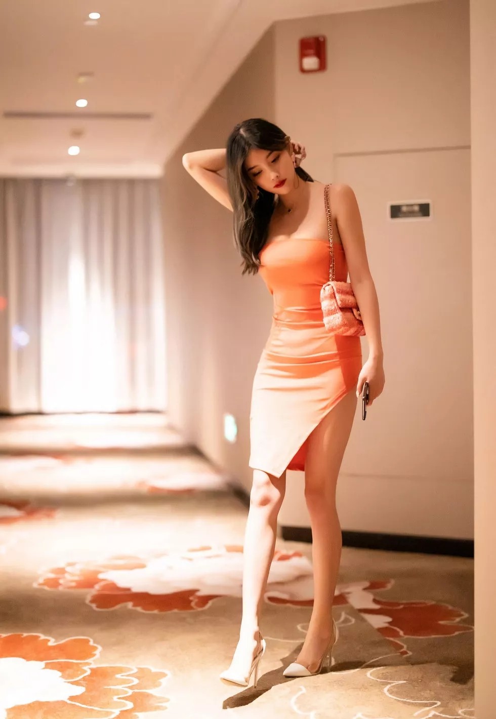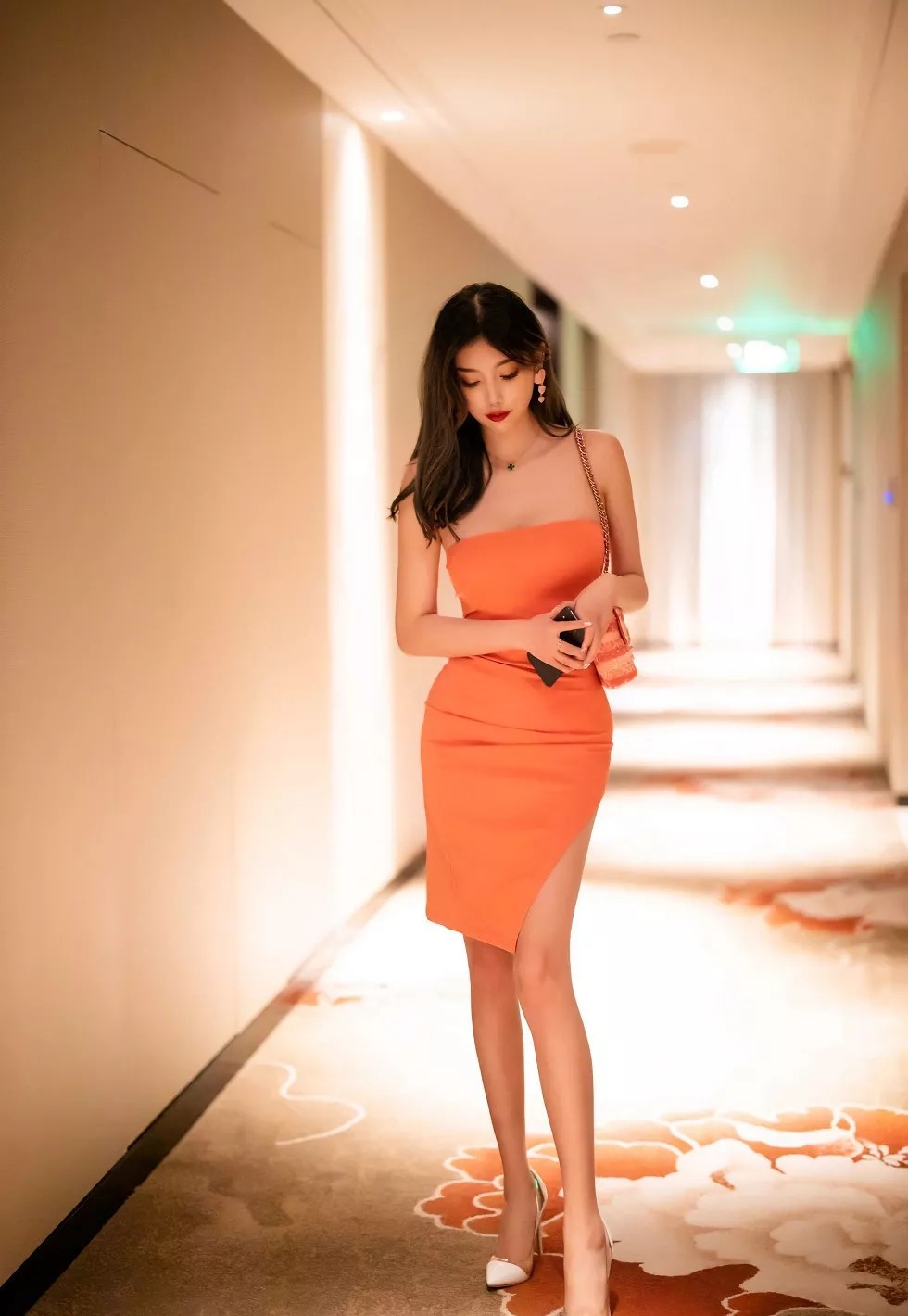 女神杨晨晨sugar再次以一身令人惊艳的时尚穿搭亮相,这次她选择了橘色连身裙搭配黑色高跟鞋,散发出独特的魅力和活力。