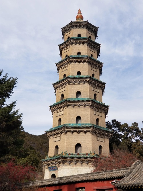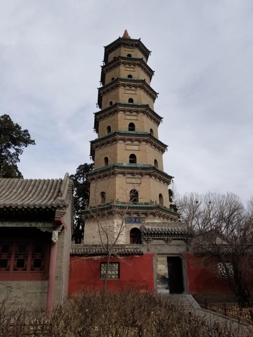 浮屠塔创建于隋文帝开皇年间,宋代重修,清乾隆十六年(1751年)重建。重建过程中,在地宫发现有一千多颗舍利,莫非是“佛门有灵,生生不竭”?于是叫做“舍利生生塔。浮屠塔七层楼阁式砖塔,平面八角形,总高37.8米。八角七级,每级四门,塔身逐层适度收分,使得整塔造型稳健挺拔。
