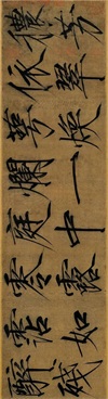 - 《秾芳诗帖》:绢本楷书,大字楷书每行2字,共20行。用笔畅快淋漓,锋芒毕露,富有傲骨之气,如断金割玉一般,别有一种韵味。
