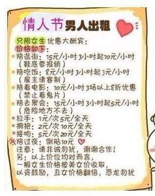 情人节男友出租,陪吃饭8元/小时,3小时起3元/小时