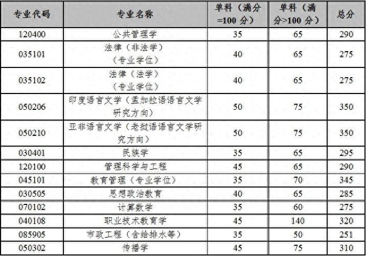 云南大学各专项计划相关专业进入复试的初试成绩要求
