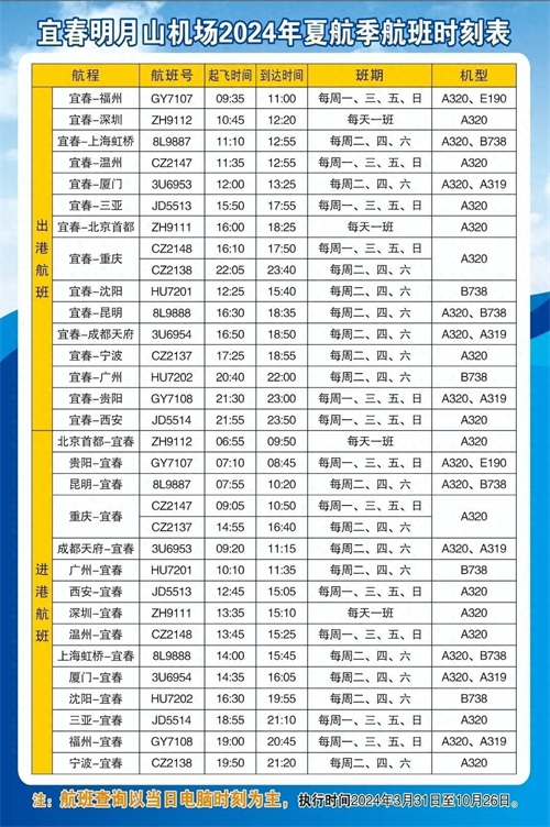 宜春明月山机场 “ 航班换季 ”啦!