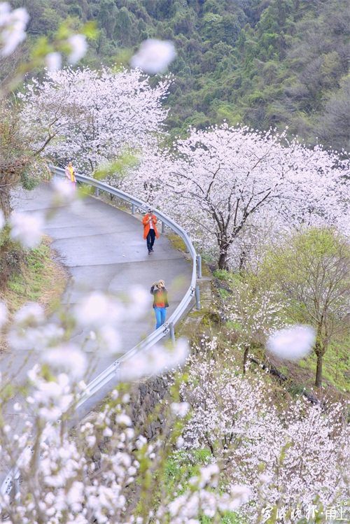 走进山谷,闻着淡淡的樱花香,看着满树的白樱,碧绿的嫩叶,或拍照,或慢步,或追逐嬉戏,让人如醉如痴。据村民介绍,今年樱花的开放时间比往年提前了十多天。