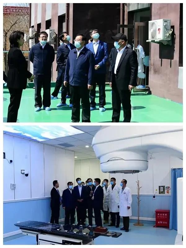石清俊董事长一行先后深入本部、渤海、妇婴、康复4个院区及胜利医养中心和天丽家园综合楼实地查看。每到一处,石董事长都仔细听取介绍,详细了解医院环境布局、基础设施、学科建设与改革发展情况。