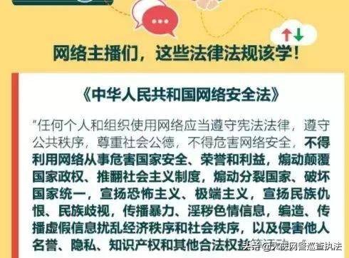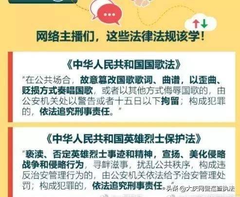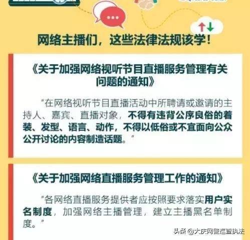 以下为大庆网警巡查执法列出的主播应当知道的法律法规: