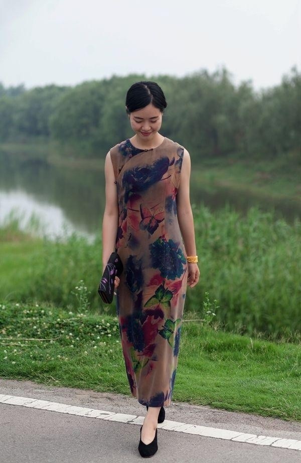 这一点大家应该没有什么小想法吧?质地轻薄的香云纱穿在身上,即使你是苹果型、梨形身材的女人,也能因这香云纱的色彩内敛与温软,而显得气质卓然。对于喜欢穿想香云纱的女人来说,穿香云纱裙装的时间越长,越能体会到薄款香云纱的奥妙。越能体会到中式立领的艳而不俗的活色生香感。