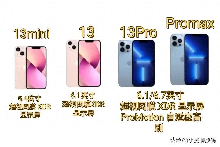 屏幕方面,13mini/5.4英寸,13和Pro版本6.1英寸OLED屏幕,小刘海设计,握持手感圆润丝滑,而13Promax/6.7英寸,观影效果极佳,Pro版和max支持120赫兹高刷。